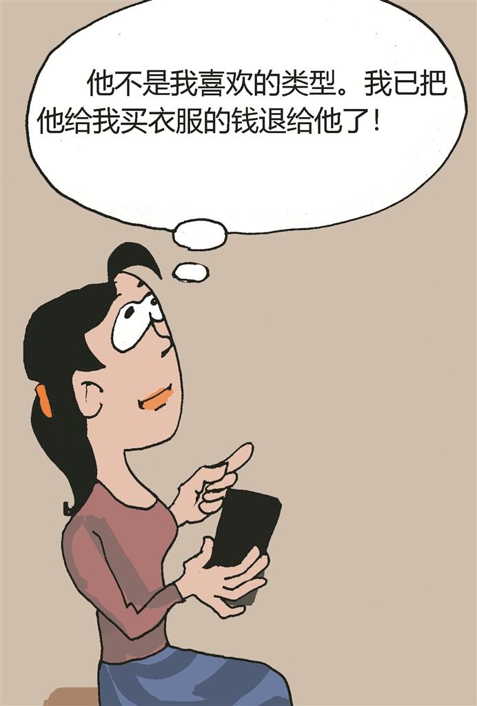 聚会散场后才晚上6点多,小强说他要买几件衣服,希望我给他一些参考。但到了商场后,他却径直走到女装区,给我买了好几件衣服,总共一千多元。送我回家的路上,他一直在问我喜不喜欢他,要我给他答案。回家后,我认真考虑后,觉得他的确不是我喜欢的类型,于是我明确拒绝了他,同时把他在商场给我买衣服的费用全部转给他。