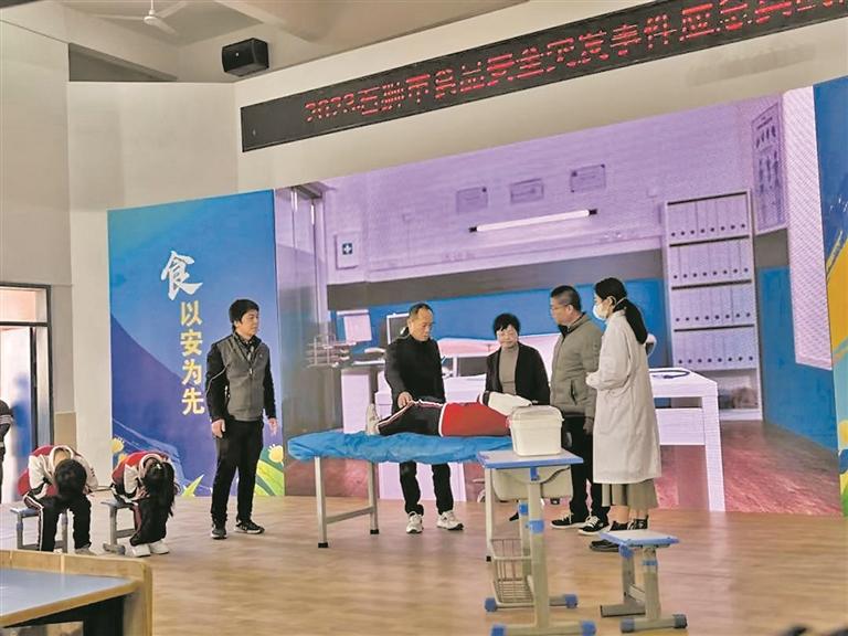 本报讯 (融媒体记者李心雨 通讯员侯培婷 文/图)为健全食品安全突发事件应急运行机制,规范突发事件处置,日前,石狮市在该市第三实验小学复光校区组织开展2023年食品安全突发事件应急实战演练。石狮市中职、中小学学校食品安全分管领导等100余人在会场观摩演练。