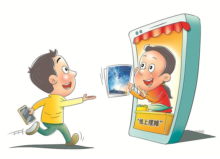 随着地摊经济的火爆,摆摊文化在青年群体中兴起,“线上摆摊”也受到不少年轻人的追捧。小小摊位更传达着互联网时代年轻人对生活工作的态度与心声。 (视觉中国)