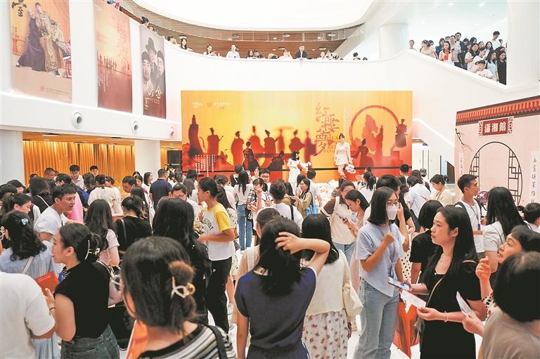 对《红楼梦》有“执念”的市民不止小戴。“80后”市民小优从小就是《红楼梦》的书迷,手速够快的她抢到了门票。“太震撼了!《省亲》那一段直接把我给看哭了!之前没有看过舞剧,第一次感受到它的魅力,就像我也走进了书里,成为大观园里的一员。”小优说,这场“看剧初体验”让她感受到了舞台表演的魅力。