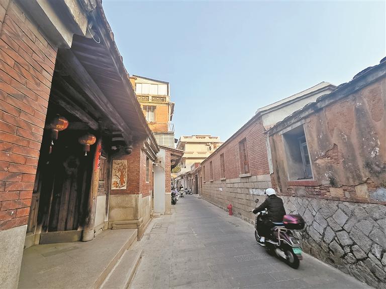 由许邦光故居往东走数十米,刚过古榕巷与旧馆驿交界处不远,即可见一民居砖石砌筑的外墙。这里旧时便是古榕里龚氏的祖厝(又称祖屋),建筑形制原为闽南传统红砖古厝,但今沿巷一侧已翻修为现代建筑。古榕巷的另一位翰林龚维琳小时候就生活于此地。