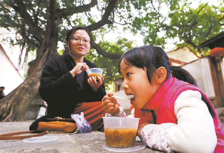 而在安溪的80后王小姐这里,做腊八粥的过程就没有那么繁复了。“记忆里粥的原料并不一定是八样,多半是喜欢什么口味,哪种原料就多放一点。我喜欢吃红枣,所以每年做腊八粥,妈妈让我帮着选原料,我总是多准备些红枣,喝粥的时候甜甜的,口感特别好。小孩都盼着过年吃好的、穿好的,小时候觉得喝到腊八粥,年也就快到了。现在喝腊八粥,更多的是一份亲情的温暖。”