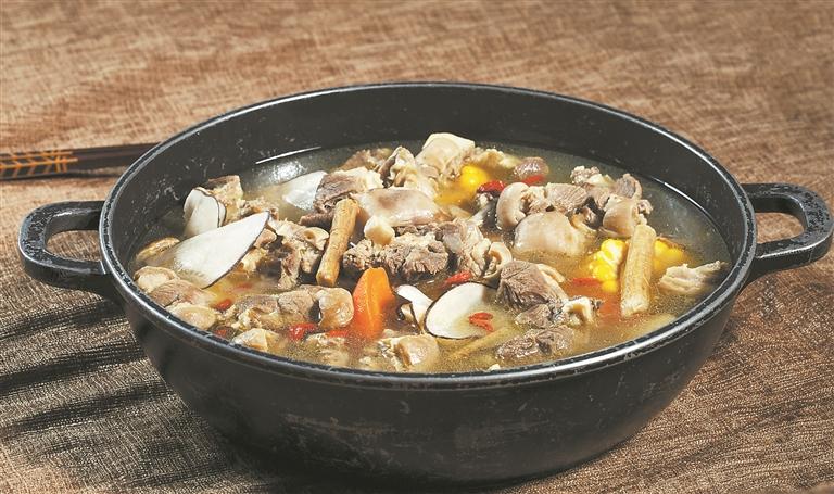 羊肉煲是将带皮羊肉、胡萝卜、白萝卜和白灵菇切成块状,在砂锅中与二十多种特色配料一同炖制加工而成。具体做法是: