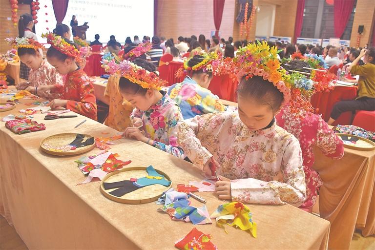 “五颜六色的花戴在头上,好漂亮,我很喜欢!”“妆糕人最有意思了,我很喜欢跟着老师学做一个个小人偶,我做过猪八戒、孙悟空……”课间时分,当记者问及学校的特色项目时,孩子们纷纷“抢答”,表达对学校对特色课程的喜爱。
