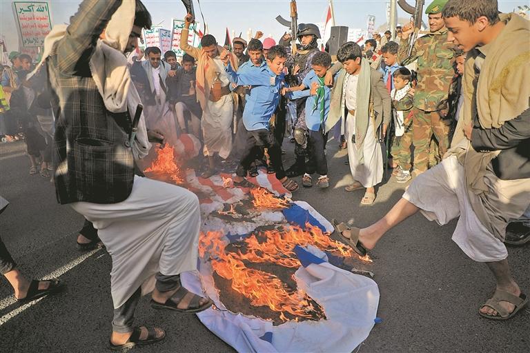 此前一天,美国和英国军方在其他4个国家的支持下,对也门各地的目标实施数十次空袭和导弹袭击,以回应胡塞武装对红海船只持续发动袭击。