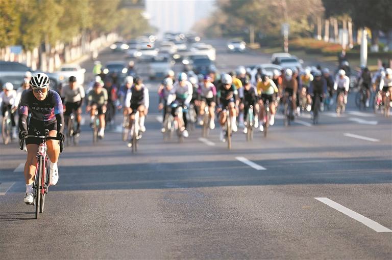 1月13日,由晋江青阳街道办事处主办、晋江市自行车运动协会承办的迎新年骑行活动举行。300多名骑行爱好者从晋江市金悦广场出发,以健康骑行的方式迎接新春佳节。(许雅玲 林劲峰 摄)