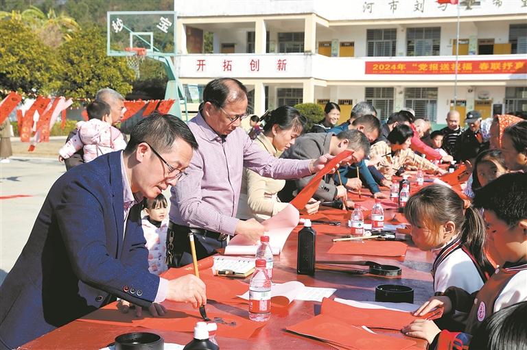 13日上午,2024年“党报送祝福 春联抒真情”第二场活动在洛江区河市镇新告村的新告小学圆满举办。当天,书法家们各显身手,将美好的祝福融入喜气的春联中。村民们在浓浓的墨香中感受到满满的年味,脸上洋溢着幸福的笑容。