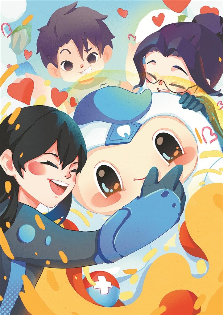 北辰为创作“爱牙岛历险记”,不仅学习大量口腔知识,还考虑到孩子们的学习与接受能力,精心打磨了全新的元宇宙世界观,既有孩子们喜欢的生动诙谐的故事情节,又具有孩子们向往的突破想象力的科幻感。他用文字创造的元宇宙空间适合匪夷所思的故事发生,并让故事情节得以天马行空地推进,更让性格各异的人物在故事中活灵活现,而现实的情感、智慧、道理等因素也得以在环环相扣、曲折动人的故事中开花结果。