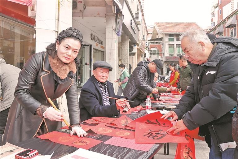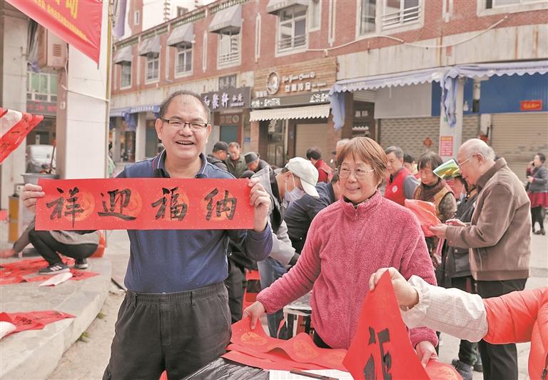 昨日上午,2024年“党报送祝福 春联抒真情”活动在鲤城区海滨街道东鲁社区圆满举办。活动现场,书法家以墨水饱蘸喜悦,以笔画传递真情,为市民送上新春祝福。