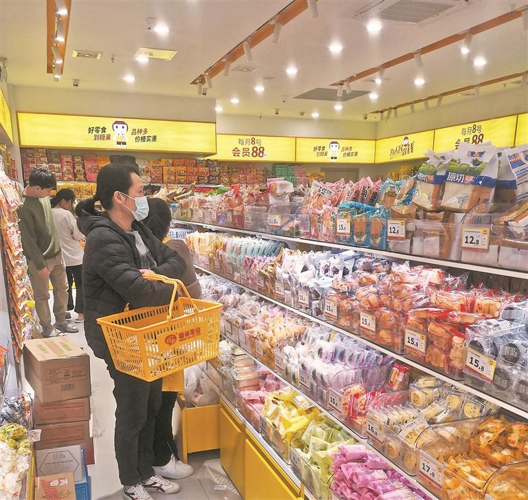 “大开口夏威夷果(400g)降至29.9元/罐、香烤紫衣腰果(500g)会员价降至49.9元/罐”“一袋净含量200g+赠58g的鳕鱼豆腐仅售9.9元”……在市区一家零食线下店,记者看到各式各样的零食摆得满满当当,不少顾客正提着购物篮选购零食。对于近期出现的降价现象,不少消费者表示,现在市场上的零食品牌和品种多样、价格亲民,春节临近,正好可以采购一些零食,能省不少钱。
