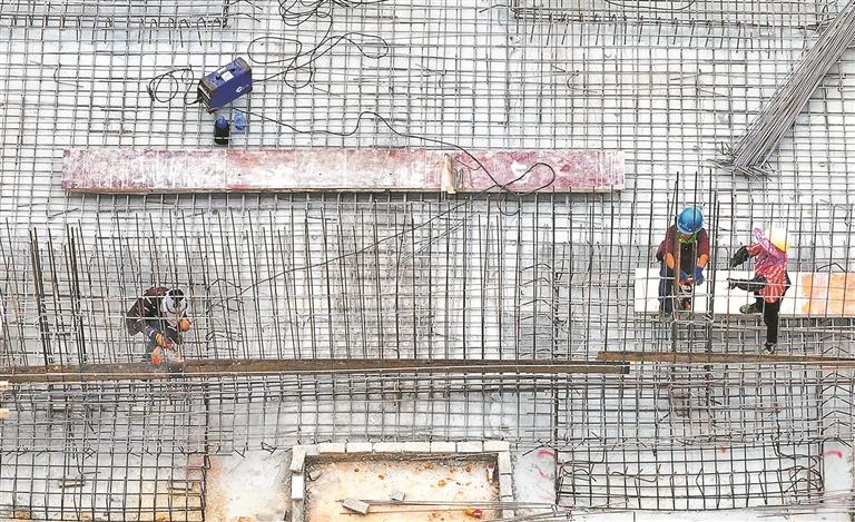 为深入开展“项目创优年”活动,南安全力推进重点项目攻坚行动,紧盯手续办理、卡点问题等,为项目建设提供全方位服务。图为位于南安雪峰开发区的福建省乔东新型材料有限公司项目建设现场,工人们正在钢筋水泥间忙碌。