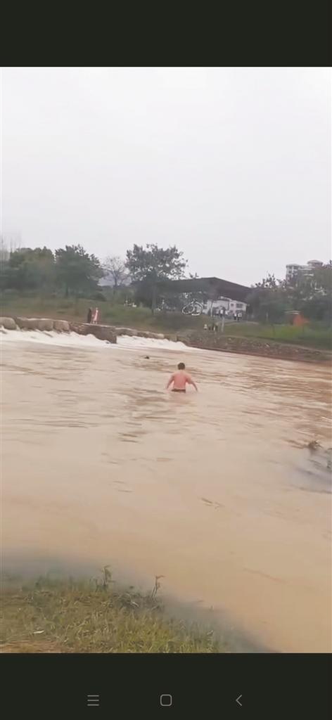 事发后记者曾前往救人现场采访,当地群众提供了一段55秒的视频:湍急的溪水中,隐约可以看到一大一小两个身影不停地挣扎,浮浮沉沉。岸边一名身材壮实的男子,穿着短裤,光着上身,朝水中两个身影方向走去……