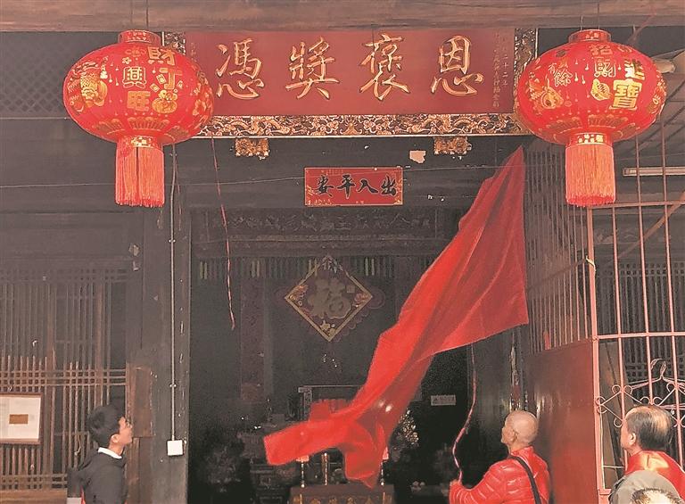 近日,在泉州中心市区九一街的市级文保单位老范志大厝,刻有“恩褒奖凭”烫金大字的红木牌匾被重新挂上大厝中厅门楣。在吴氏后人的努力下,湮没于历史洪流中的牌匾以既古朴又崭新的姿态重回人们的视野中。