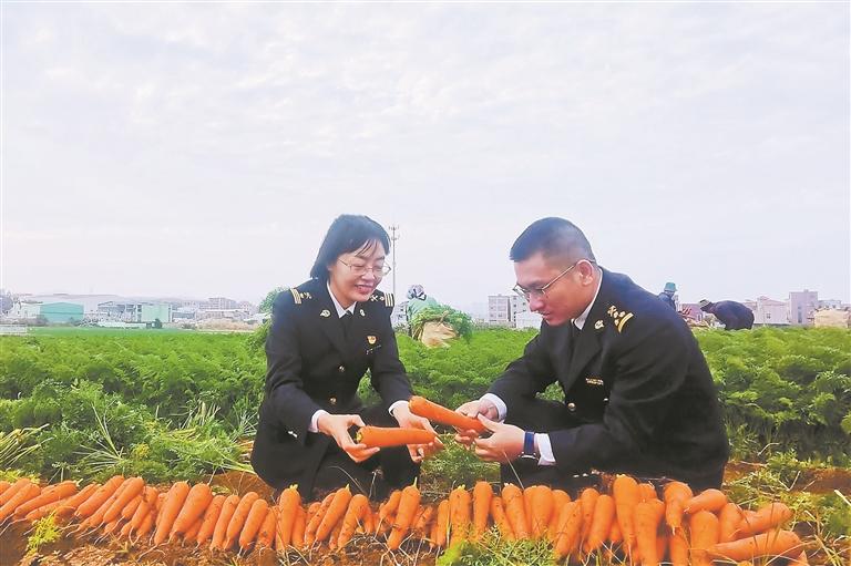 为助力胡萝卜出口,泉州海关工作人员从种植到采收对企业进行全程指导。(王玲玲 摄)