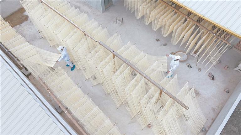 虎邱镇金榜村手工面线历经代代传承,至今已有100多年历史,现有面线生产户50多家,每年可产面线超过35万公斤,是当地的一面“金字招牌”。目前,金榜村计划建设一个标准化加工厂,引领更多群众传承金榜手工面线这一百年技艺,同时作为展示窗口和体验基地,进一步打造村级公共品牌,提高金榜手工面线知名度和影响力,促进乡村振兴。(黄东华 摄)