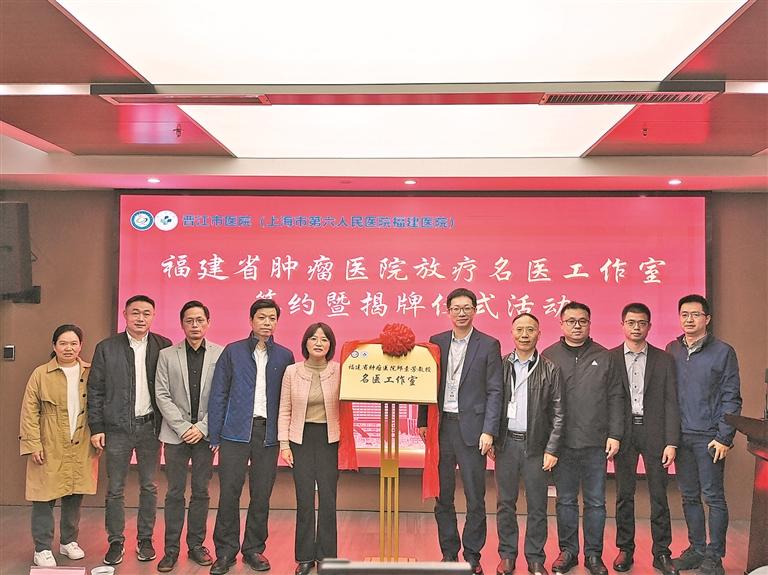 昨日,福建省肿瘤医院邱素芳教授名医工作室签约暨揭牌仪式在晋江市医院(上海市第六人民医院福建医院)举行。据悉,工作室揭牌后,晋江及周边县市区百姓将不必往来奔波,在家门口就可享受名医的诊疗服务。该院负责人表示,医院也将充分利用邱素芳教授及其团队的专科优势,积极深入对接,以期实现资源共享、优势互补、共同发展。