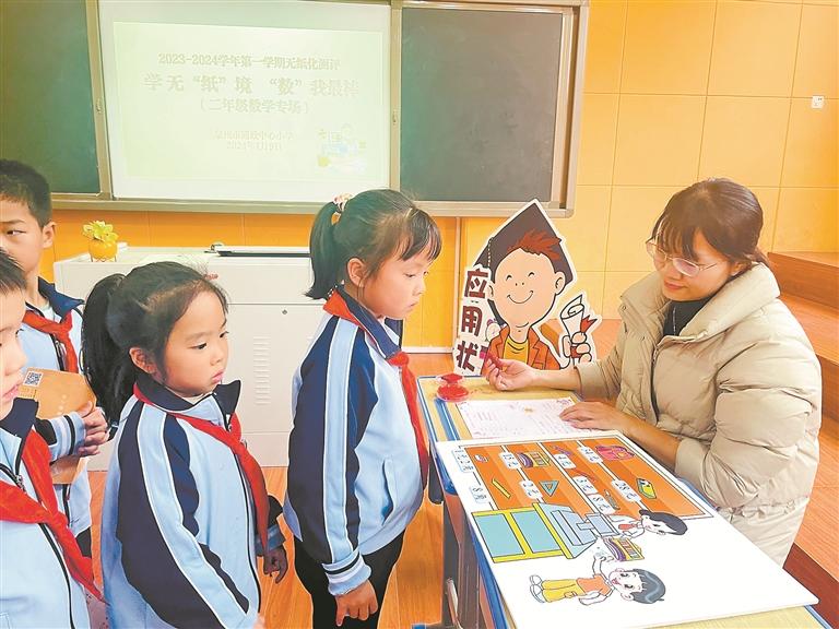 逛超市、摸金蛋、打网球、集盖章、与机器人对话……这不是游园会,而是我市部分小学低年级期末无纸化素养测评现场。“双减”政策的推行,减轻了学生的学业负担,随之发生改变的是低年级学生的学习能力测评方式。在陆续进行的全市小学低年级期末无纸化素养测评中,部分学校将测评设置成形式多样的闯关关卡,让同学们在轻松愉快的氛围中,感受学习的快乐。