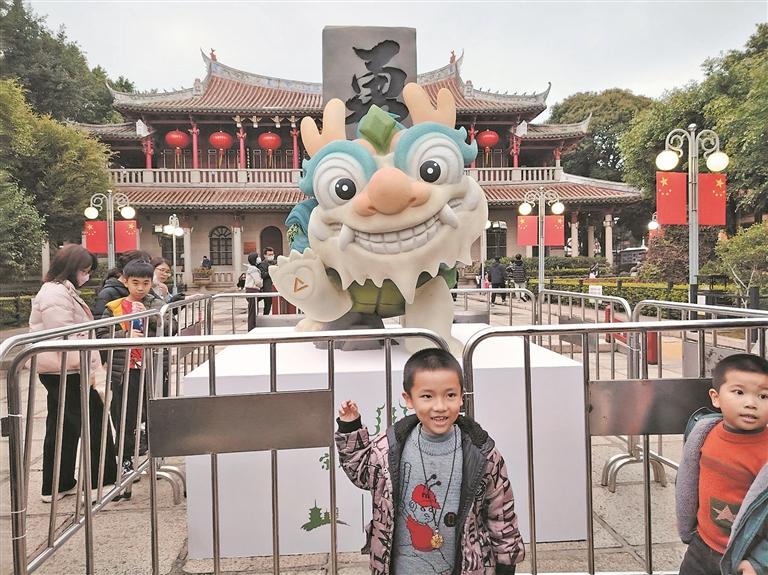 活动现场还向游客们分发“十龙九子”贴纸。“这些贴纸是‘十龙九子’的设计图,实物更可爱更鲜活,欢迎大家多多关注‘十龙九子’的出街活动。”鲤城区文旅局副局长林菲介绍,“蒲牢”和“赑屃”相继亮相后,“十龙九子”其他装置也会在接下来的周末,陆续在古城世遗景点、街巷、文创园区亮相,其中传统非遗大型青龙装置“龙鲤鲤”将于2月初压轴登场,给大家送上“拢总好”的美好祝福。