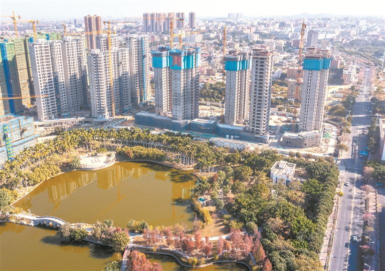 近日,石狮龟湖公园东片区安置房最后2栋楼房完成顶层楼板浇筑,至此,该项目5栋高层安置房全部封顶,比计划工期提前了将近2个月。据悉,该项目占地约34.85亩,建设5栋安置楼,每栋有24或25层高,部分一楼配有商铺,计划在2024年12月完成外立面装修。