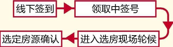 1.摇号中签的客户凭“认筹号”及身份证明,到“签到区”进行签到,“认筹号”需与身份证信息一致,确认完毕后,发放中签号码单,一个认筹家庭对应1名人员进入“等候区”。