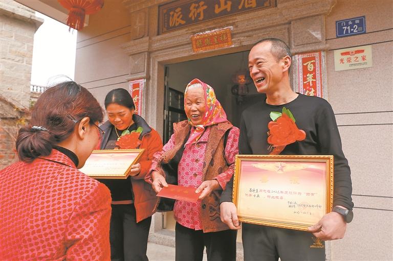近日,泉州台商投资区退役军人事务局、区双拥办、区台胞台企服务中心联合张坂镇党委、政府、张坂镇门头村“两委”组成慰问组,为在西藏高原戍边的现役军人苏伟真、苏伟诚家庭送去“四有”优秀士兵喜报。记者了解到,近年来,台商区持续开展拥军优属活动,激发军人建功立业的热情,提升军属的荣誉感、获得感和幸福感。