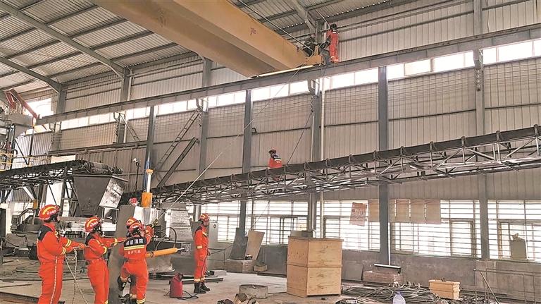 本报讯 (融媒体记者陈明华 通讯员许振塔 刘东贤 文/图)昨日下午2点左右,南安市石井镇杨山村锦堂一处石材工厂内,一名工人被困在距地面8米高的行吊上。事发后,南安消防、派出所、120急救中心赶往现场,工人被成功救下,并送往医院救治。