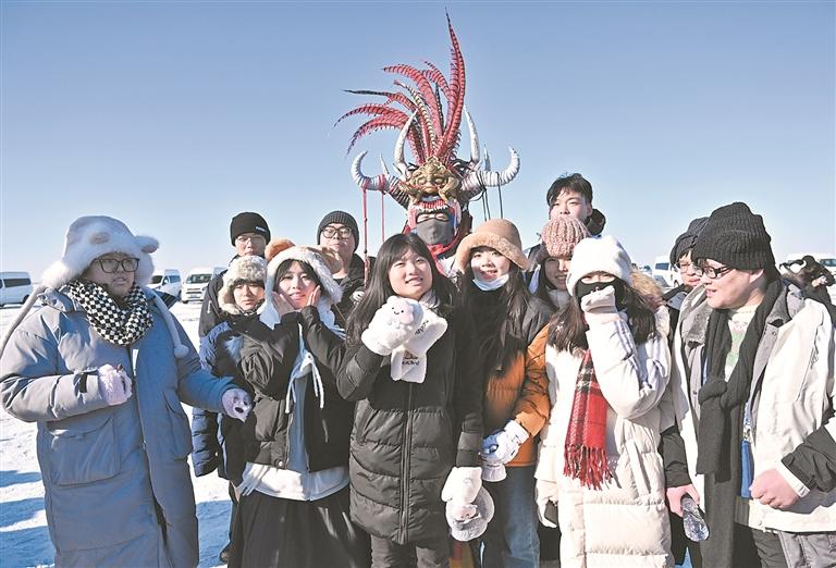 1月24日,全国台联第三十届台胞青年冬令营吉林分营的营员们来到吉林省松原市,体验东北的渔猎文化。(新华)