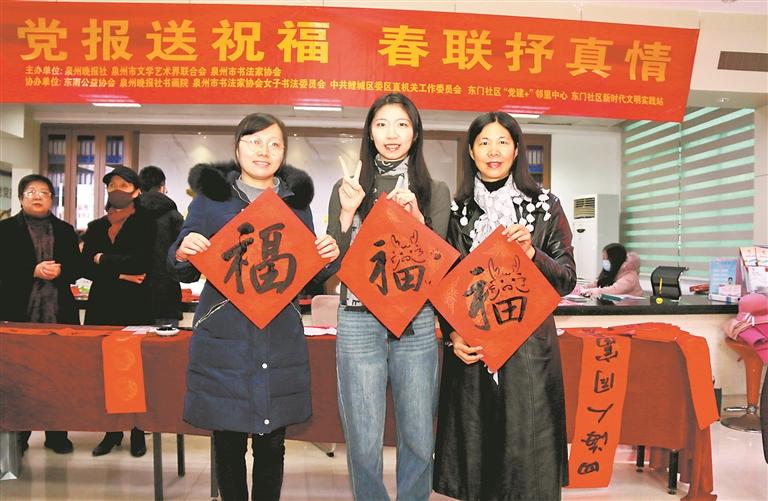 昨日,2024年“党报送祝福 春联抒真情”活动第七场在鲤城区鲤中街道东门社区圆满举办。来自泉州市书法家协会的11位巾帼书法家现场挥毫,将饱含美好祝愿的春联赠予市民。