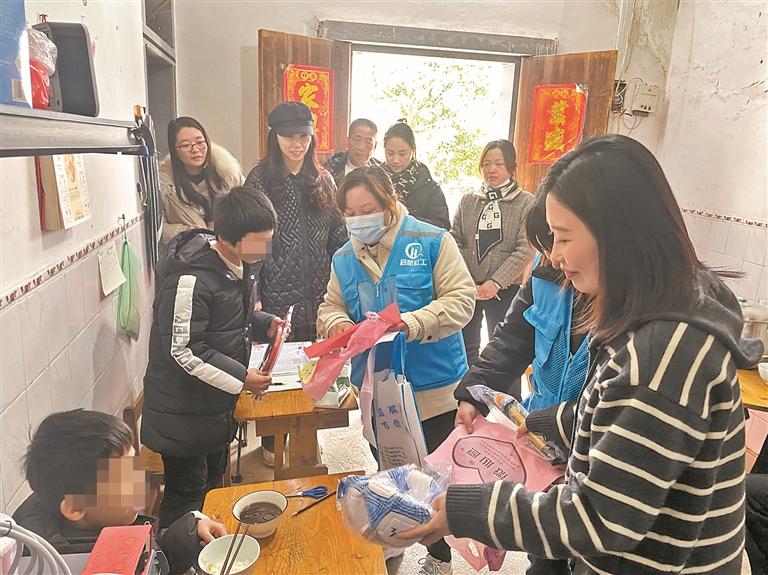 入户过程中,有一名儿童很特别,他叫小志(化名),父母离异,母亲患有精神智力残疾,他和妈妈居住在镇政府盖的安居工程房屋里。每到冬天,母亲总是穿着单薄,让小志看得心疼。小小年纪的他有一个“微心愿”,就是给妈妈一件冬天的棉袄。看到工作人员拿出一件漂亮的羽绒服时,他开心得哭了,立即帮母亲穿上。看到母亲开心的样子,他坚定地告诉社工:“一定会好好努力学习,将来也要做公益,回报社会。”