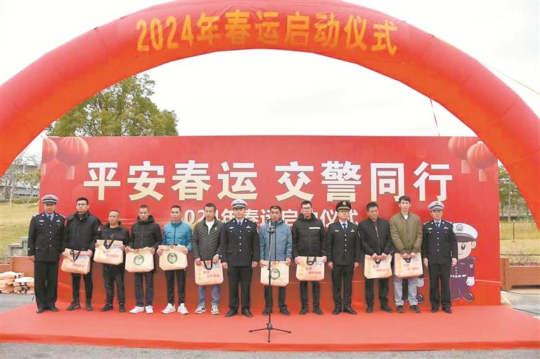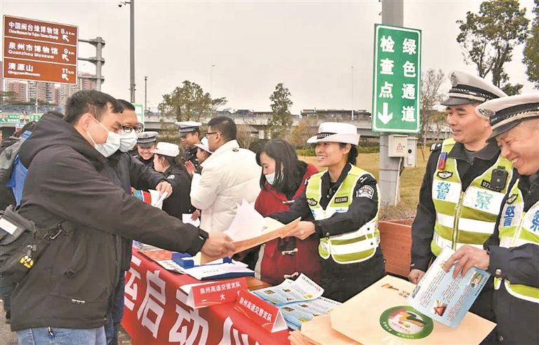 春运期间历来是道路交通事故易发多发期,交通流量加大、长途行驶增多,人流、车流、物流相对集中,客运货运混行、大车小车交织,各类风险隐患突出。昨日上午,泉州高速交警支队联合泉州市公安局交警支队、泉州高速公路行政执法支队等部门在沈海高速泉州收费站外广场举行“平安春运·交警同行”2024年度春运启动仪式。