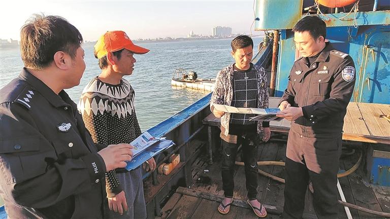 近日,泉州台商投资区公安分局张坂派出所联合海防大队,充分利用“船进港、人上岸”有利时机,组织民警深入辖区码头,开展反走私反偷私渡宣传活动,全力确保沿海管防工作平稳可控持续向好。其间,民警还对船只开展治安检查,提醒渔船民在岁末年初之际定期巡检船上的电线电路、消防设施,及时排除可能存在的安全隐患。