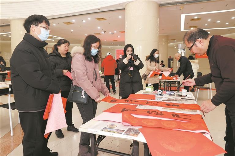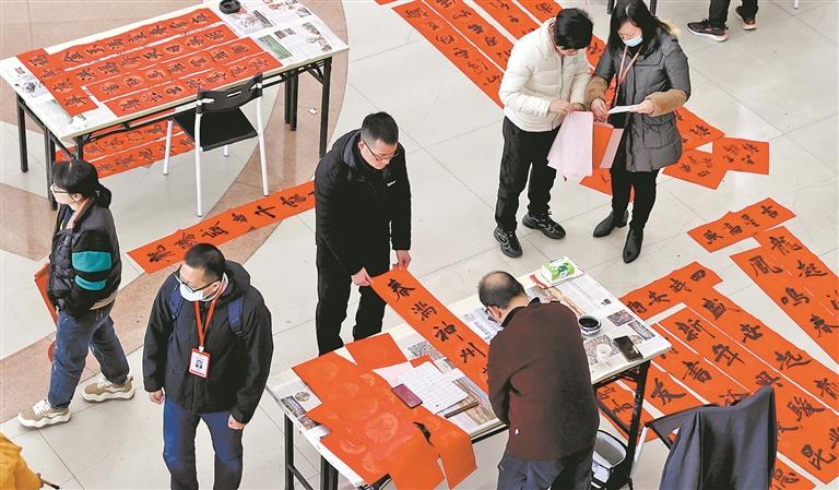 千门万户曈曈日,总把新桃换旧符。写春联、贴春联是我国的传统习俗。2006年,“党报送祝福 春联抒真情”活动开启,至今已连续成功举办了18届,共送出10万多副春联,成为一个文化惠民的服务品牌。每逢春节来临之际,书法家们现场书写的一副副春联,为广大市民送去新春祝福,唤起了社会各界对传统文化的热爱。
