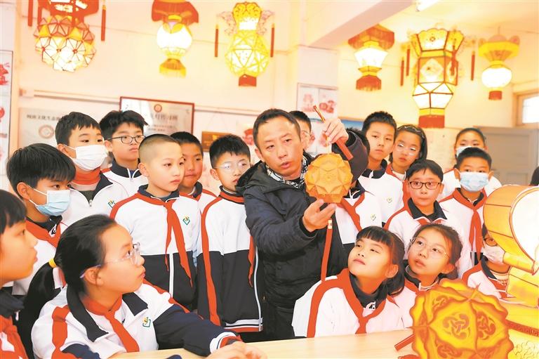 寒假开始,本地非遗研学游成为我市各大中小学的热门选择。图为昨日,泉州晋光小学南俊校区五年2班的同学们来到泉州花灯制作技艺传承人林守明父子的研习所,制作花灯,体验非遗魅力,活动也吸引了央视《走遍中国》栏目组前来拍摄。(融媒体记者陈晓东 摄)