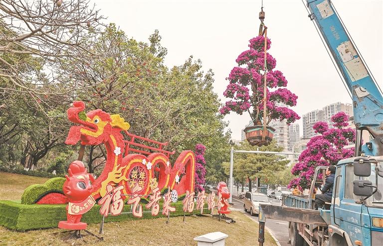 随着龙年春节临近,晋江大街小巷的节日氛围日益浓厚。晋江市林业和园林绿化局围绕“福暖四季 福佑绵长”和“龙年福见”两大主题,在晋江市区主要道路、重要节点、公园广场的绿化带上设置18处景观小品,着力营造喜庆祥和的节日氛围。