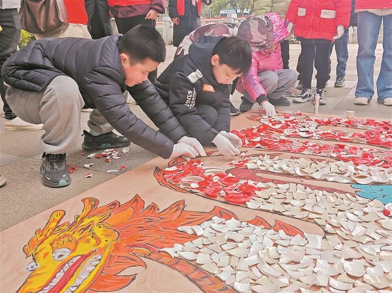 当日,在共青团德化县委员会和德化县人民检察院共同举办的“筑梦青春 冬暖童心”寒假公益课堂开班仪式上,留守儿童、事实无人抚养儿童等在工作人员和志愿者的帮助下,一起贴“龙鳞”,共同完成寓意着平安顺遂的作品。