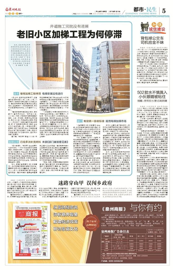 据悉,为制定统一验收标准,规范电梯加梯市场,2022年2月,市住建局等五部门联合出台了《关于城市既有住宅增设电梯指导意见》(下称《指导意见》),同年6月,丰泽区住建局等四个部门联合出台《泉州市丰泽区住房和城乡建设局等四部门关于城市既有住宅增设电梯的实施意见》(下称《实施意见》)。