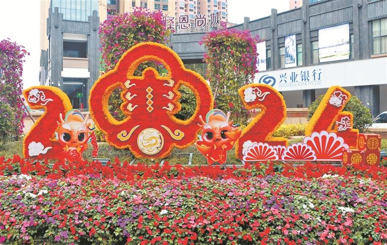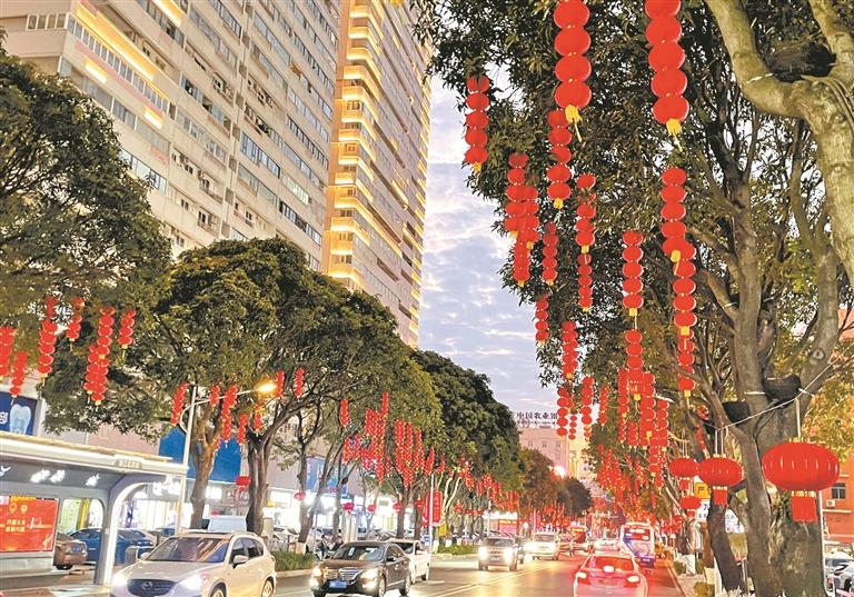 在洛江区双阳街道阳光路、印尼街、侨乡广场、福文化公园等地及主次干道分别布设的红灯笼、中国结、“福”文化景观小品等,喜庆的场景吸引行人驻足拍照打卡。