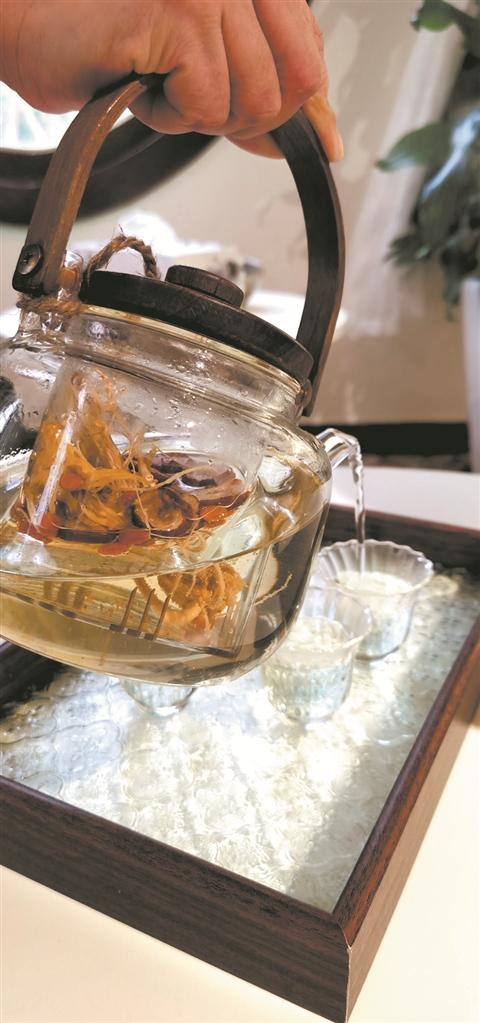 一片陈皮、一个橙子、一小撮岩茶、几块冰糖,“80后”教师小王把养生壶和煮茶的材料带到了办公室。最近一段时间,她的“茶谱”不断更新,不变的是,每一天自己煮的茶饮里都有一味中药。香橙陈皮茶、胖大海雪梨茶、百香果菊花茶、玫瑰红枣枸杞茶……