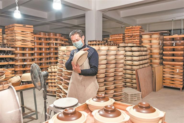 “我们要干到农历廿五。”福建省德化县小杯故事陶瓷有限公司业务部负责人苏智璇介绍,目前,公司70米的隧道窑仍在加足马力生产,每天有30车的“围炉”产品从这里走向全国,甚至走到了东南亚。2022年,小杯故事从外贸出口向内销转型,当时,刚火起来的“围炉煮茶”让公司抓住了新商机。炭炉、罐、壶、耐热煲……目前公司常规生产的产品一共有100多种,年产值达到了2000多万元。去年底,“围炉煮火锅”火了,公司也紧跟热度,推出了陶瓷鸳鸯锅等煮火锅的器具。
