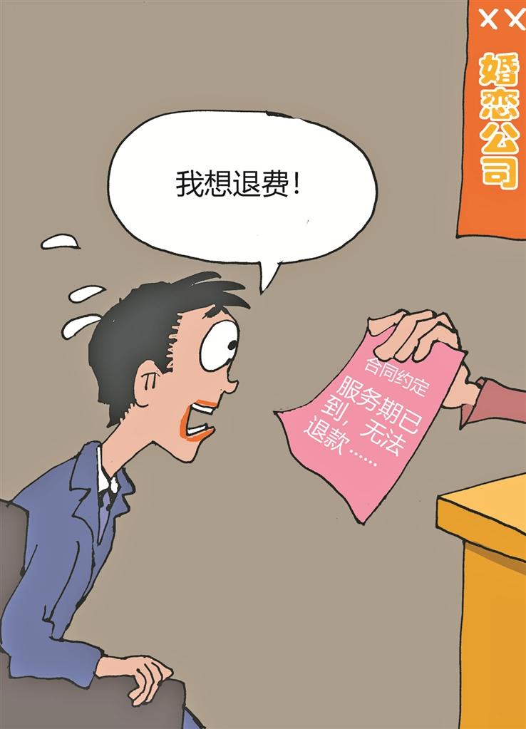 转眼半年时间已到,我还是没能相亲到心仪的伴侣。交钱之前,红娘把自己的服务质量夸得天花乱坠,但交完钱却完全不是同一回事,提供的服务和费用完全不对等。我向该公司提出退费,对方却说根据合同约定,服务期已到,无法退款,但后续如果有适合的对象,会再推荐给我,不过从此后红娘却很少再联系我。