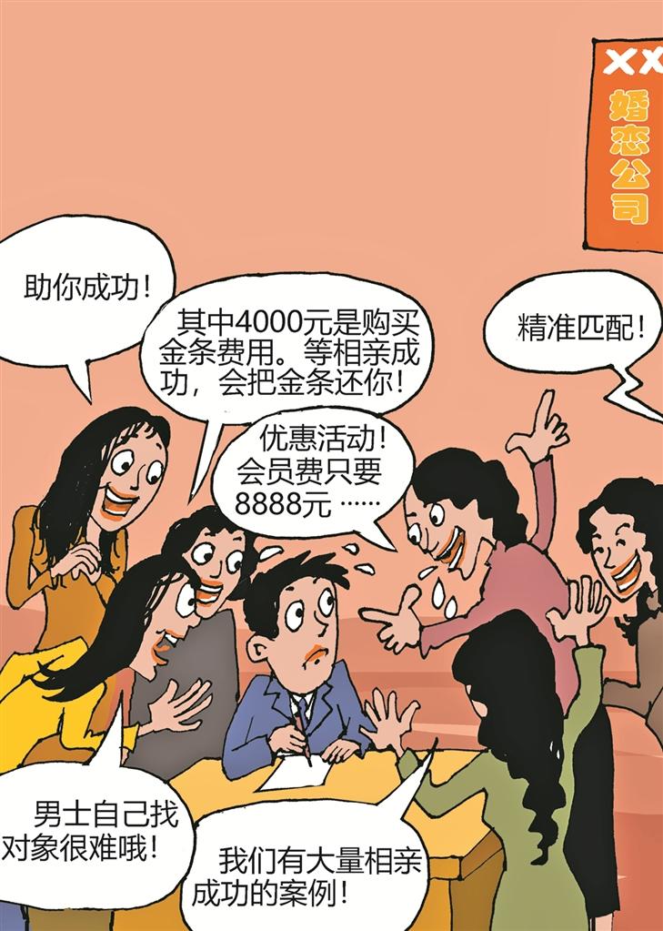 随后,其中一个红娘把我带到一个小房间里,和我谈费用问题。她建议我先办理半年会员,原价为12888元,最近他们公司做年中优惠活动,会员费只要8888元,另外4000元是作为购买金条的费用,不过购买的金条要先暂寄在他们公司里,等到相亲成功结婚时,他们公司会把金条还给我。