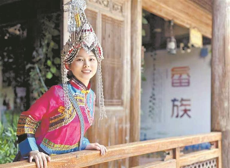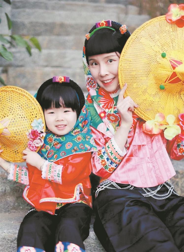 近日,抖音视频号“郝欢熙”发布了一个民族服饰变装视频,在网络上迅速掀起一波传播热潮,目前点击量已达数十万。视频里,畲族女服饰和围裙上刺绣着各种彩色花纹,镶金丝银线,是象征万事如意的“凤凰装”,高高盘起的头髻扎着红头绳,全身佩挂叮叮作响的银器。据了解,在南安市码头镇,民族服装体验打卡活动十分受游客欢迎。土楼内共预备了二三十套民族服饰,除了畲族服装还有苗族、彝族、白族等。管理员小仙介绍:“最受欢迎的还是我们畲族的凤凰装和凤凰头饰。每当有团队过来,琳琅满目的少数民族服饰,不一会儿就被大家挑选光了,大家喜滋滋地换上民族服装,在土楼内各个角落拍照,留下许多美丽而独特的照片。我们土楼内还专门设了一面照片墙展示这些美照。”