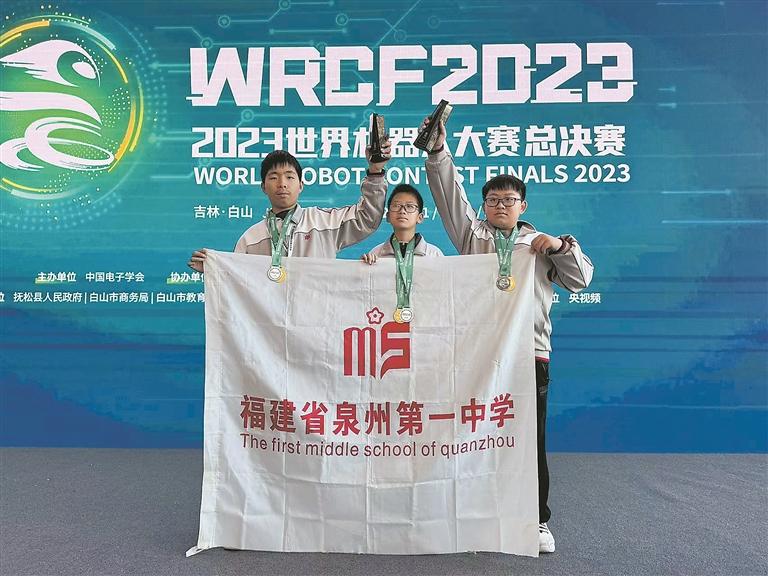 本报讯 (融媒体记者陈森森 通讯员倪宁馥 周云玲 文/图)近日,2023世界机器人大赛总决赛在吉林省举行。经过激烈角逐,泉州一中参赛队伍在全国赛场上不畏强手,奋力拼搏,发挥出色,勇夺两个一等奖、一个二等奖、一个全能奖。