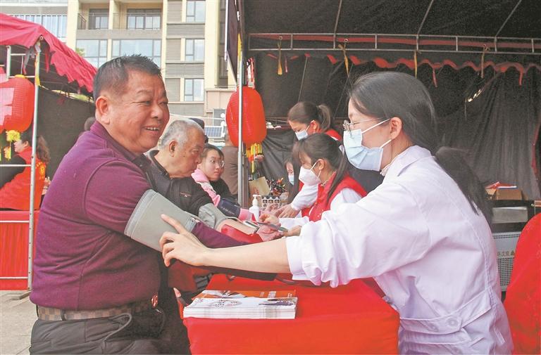 活动中,卫健部门组织当地8名医护人员现场开展义诊活动,向群众科普常见的基础疾病、老年病、骨科疾病防治等知识。医务人员就各类基础疾病、老年病和治疗问题进行耐心解答,为有需要的患者免费测量血压、血糖,并提供一对一免费诊疗服务。