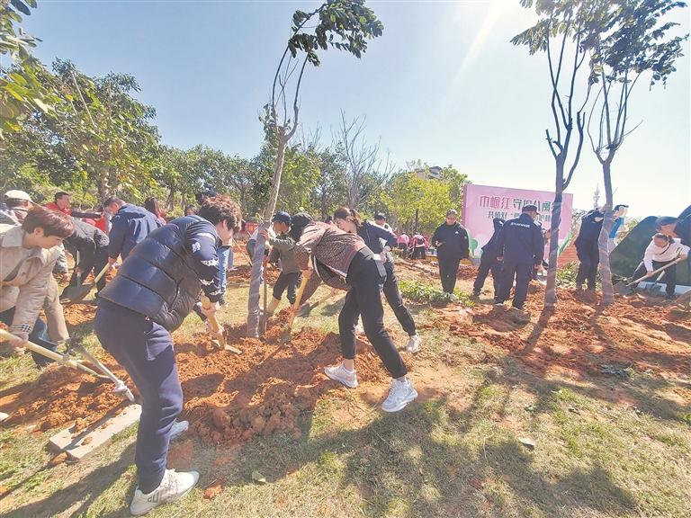 昨日,市林长办、市妇联、市林业局联合开展“巾帼红守护八闽绿 共植好‘枫’景防护林”义务植树活动,践行“绿水青山就是金山银山”理念,加快生态赋能,提升城市能级和品质,共建美好生态家园。活动中,还开展“妇儿维权心愿卡”践诺行动,为新苗系祝福,并发布《致全市广大妇女及家庭义务植树倡议书》,呼吁大家共同携手,让家园更加绿色美好。