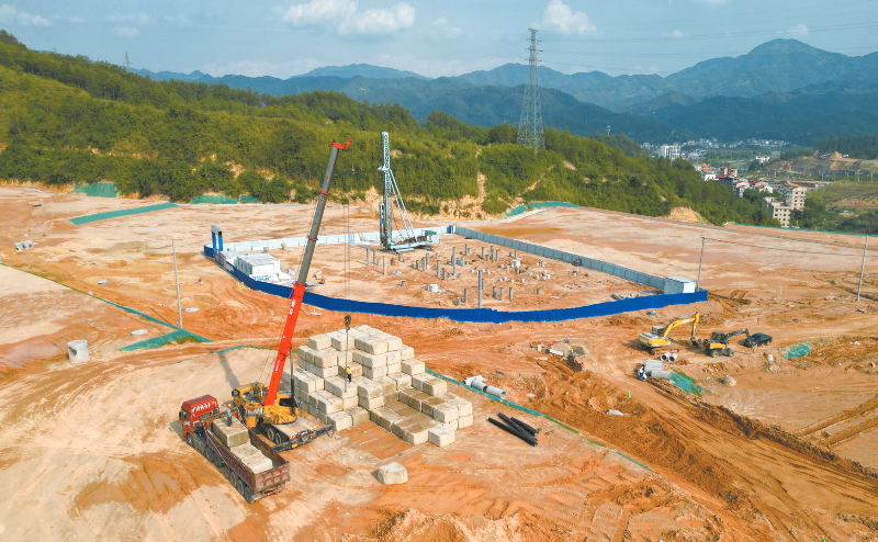本报讯(通讯员 熊川 文/图)“砰砰砰......”连日来,位于永定工业园区的永定区现代特色农产品科技产业基地项目建设现场机械轰鸣声此起彼伏,打桩机与挖掘机协同作业,工人们头戴安全帽、在钢筋框架间有序进行桩基固定作业,施工现场运输车辆往来穿梭,一派热火朝天的建设景象。