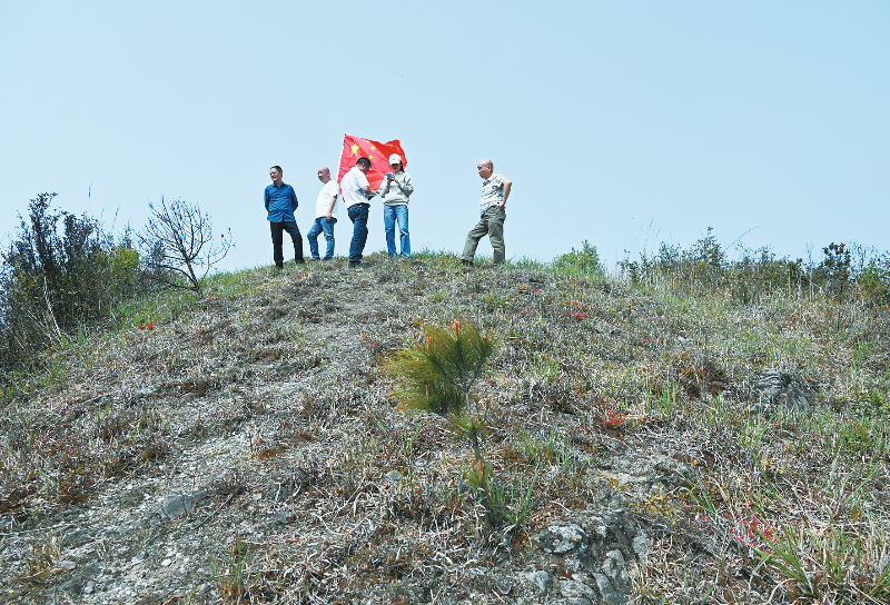 车子在盘山路上抬升,群山风光不断撞入眼帘,众人情绪高涨。半小时后,抵达两山之间的鞍部,我们弃车沿着陡峭的山路登顶。路虽艰险难行,但很快便望见插在一顶尖上的国旗,众人愈发兴奋。高海拔的山上茅草、灌木丛生,风的呼号不绝于耳。少顷,便登上梦幻般的一顶尖。据云,在没有海拔测量技术的年代,古人误认为是全县最高峰,名曰第一峰。一顶尖海拔1413.7米,虽非绝顶,却以“万山朝宗”的气度,被古人奉为“邑脉之源”。