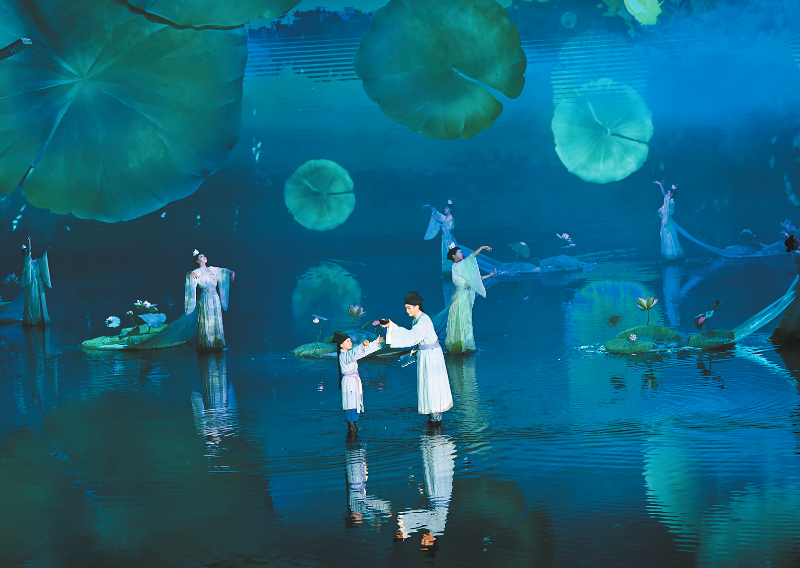 5月8日,大型文旅舞台剧《月映武夷》演员在演出。近日,大型文旅舞台剧《月映武夷》在福建省武夷山市上演。该剧融合音乐、舞蹈等表演形式,以朱熹成长故事为主线,展现八闽传统文化,成为武夷山的文旅新名片。新华社记者 姜克红 摄
