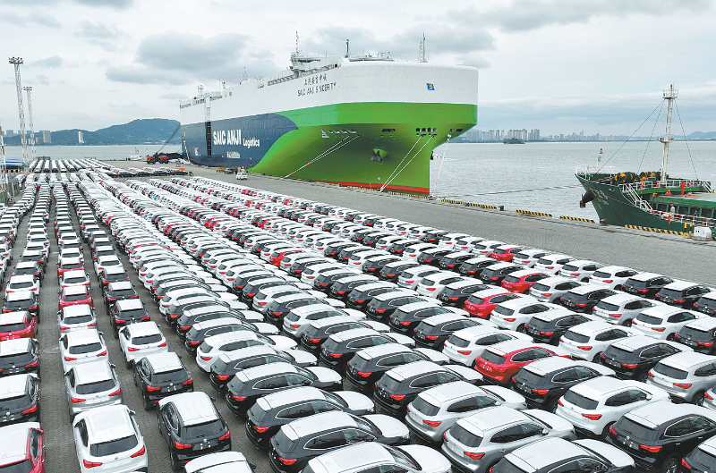 “上汽安吉申诚”号汽车滚装船停靠在福建厦门东渡港区现代码头(无人机照片)。新华社记者 姜克红 摄