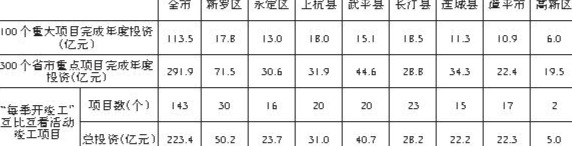 1-4月,100个重大项目完成投资113.5亿元,完成年度计划39.3%;300个省市重点项目完成投资291.9亿元,完成年度计划39.9%。全市参加“每季开竣工”互比互看活动竣工项目143个、总投资223.4亿元。